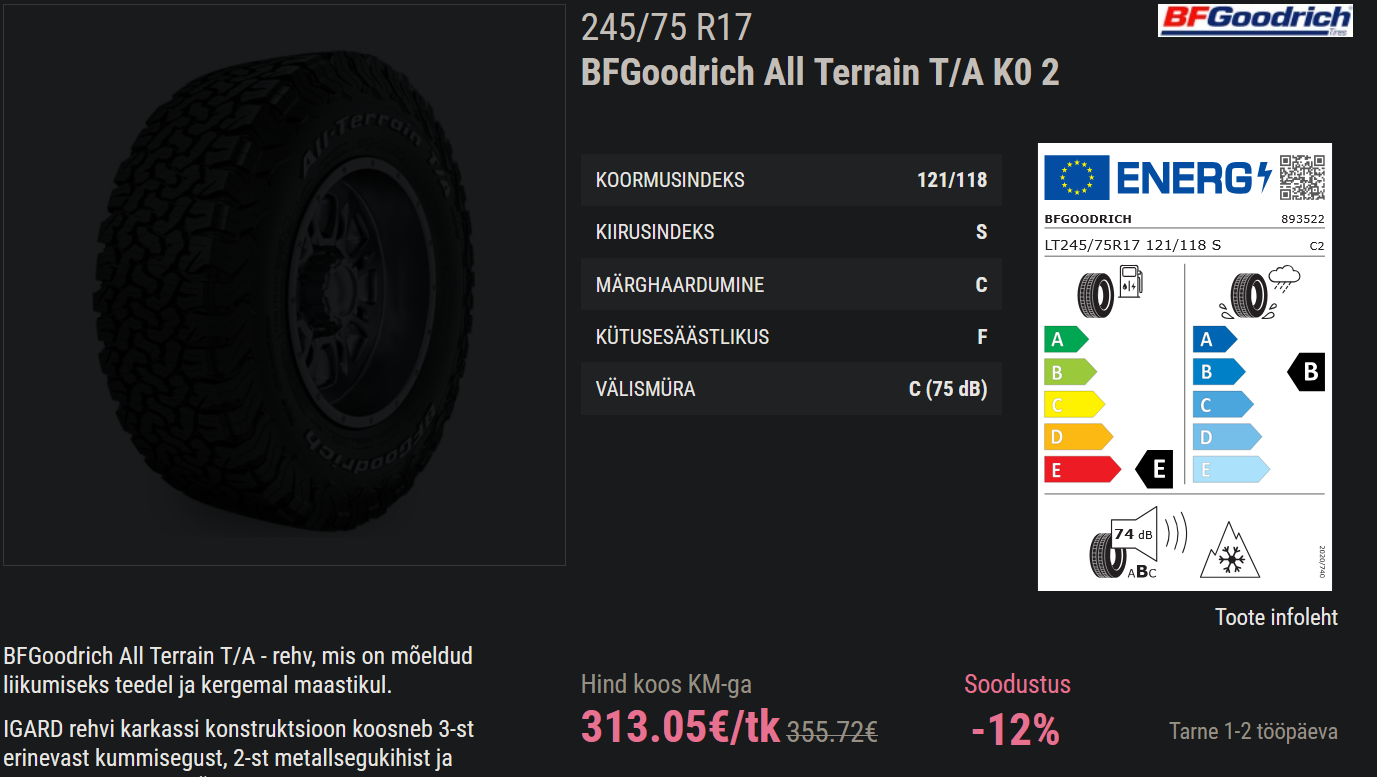 Kes viimasel ajal pole uusi rehve ostnud siis mainiks kohe ära et pärast Covid-rahatrükki on hinna 30-50 % tõusnud.