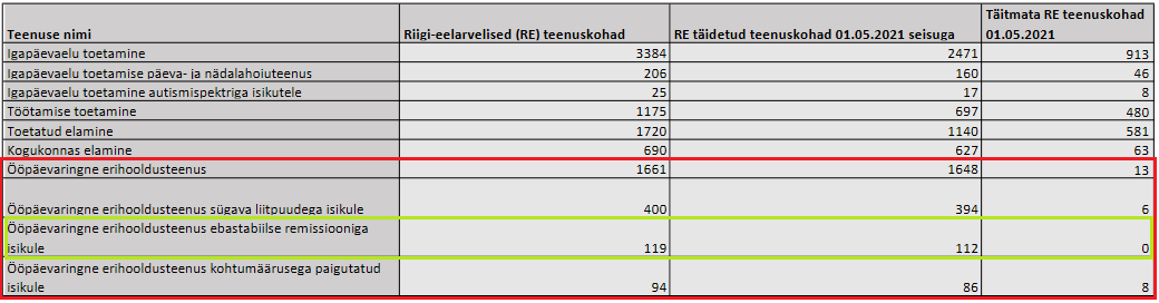 Tabel on võimas, aga kui noppida sealt välja erihoolekande teenuse osutajad ja erihoolekande patsientide/hoolealuste kohtade arv, siis läheb kõvasti nukramaks.
