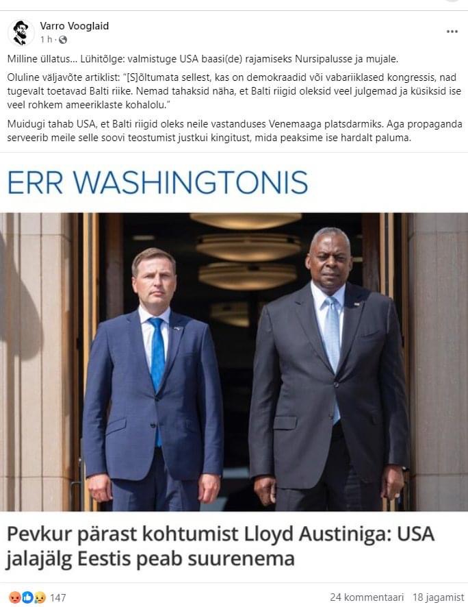 Varro kummaline sõnavõtt USA sõjalise abi vastu, kas selline sõnavõtt on neutraalne ja sõjalist rahuseisu püüdlev kusagilt otsast?