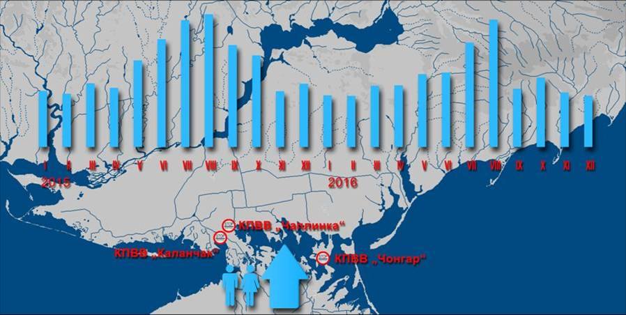 Посмотрите на графики. Четко видно, что в курортный сезон поток людей в Крым вырастает в два раза. При этом возможности силовиков фильтровать этот поток очень ограничены – в первую очередь из-за отсутствия соответствующих правовых решений.