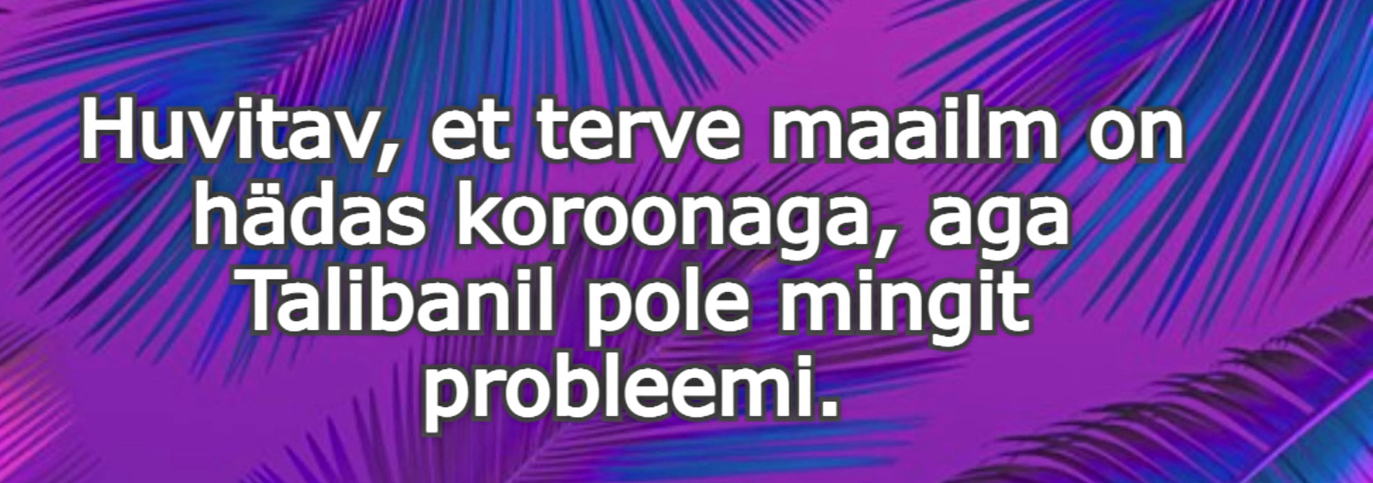 Eks taliibid täidavad vabariigi valitsuse korraldusi - väliüritustel (loe: ründeüksuses) koosviibimise piirang 100 inimest, spaad ja tennisekeskused on suletud (loe: hävitatud), haiged jäävad karantiini (loe: loobitakse kividega surnuks) ning kantakse maske.