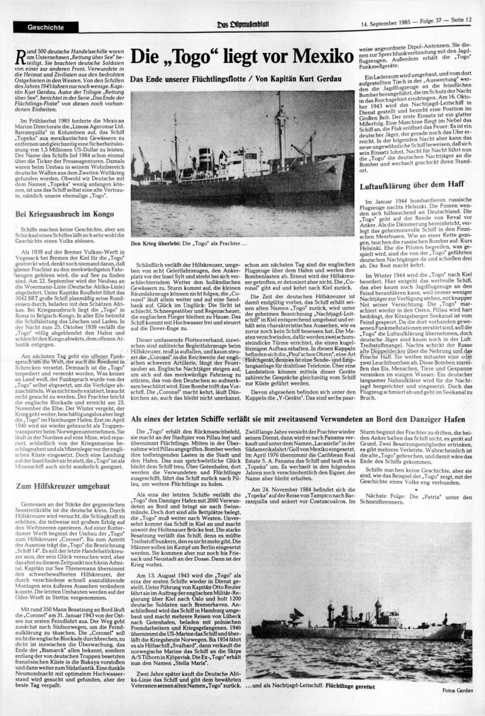 Togo kohta veel selline artikkel (Das Ostpreussenblatt 14.Sept.1985):