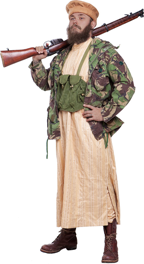 6. Rinnarakmed ei klapi tüübil olemasoleva relvastusega. See ju Hiina AK komplekti kuuluv detail. Mehel on aga fotol hoopis miskit muud õlal. Seega poleks paha kusagilt üks üle õla ja ümber keha ulatuv padrunipidemetega riidevöö muretseda. (Ega taolisi vist meil siin saada olegi. Tuleb ise teha, arvan ma. Ja vastavasse kuluvusastmesse viia.)