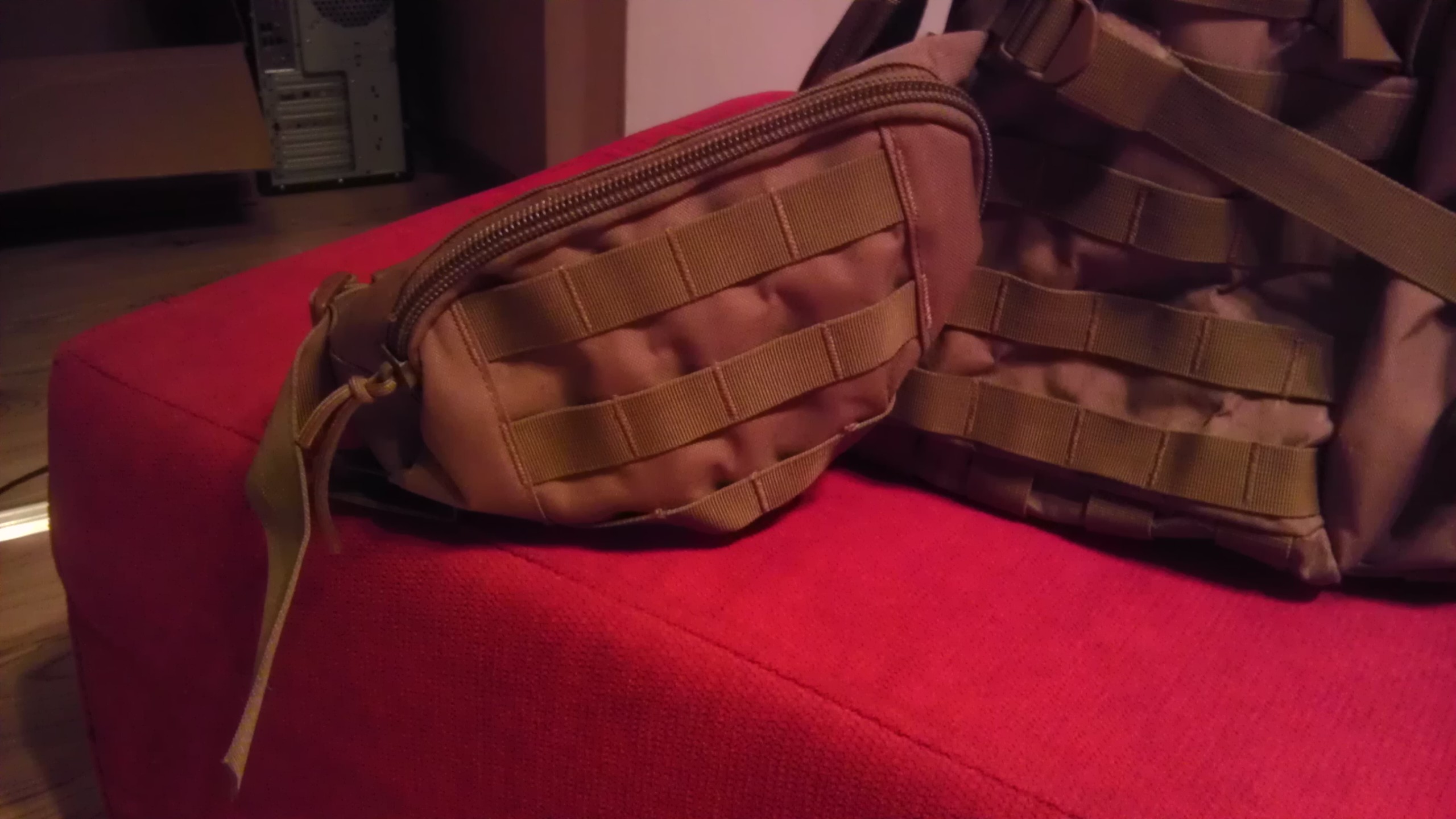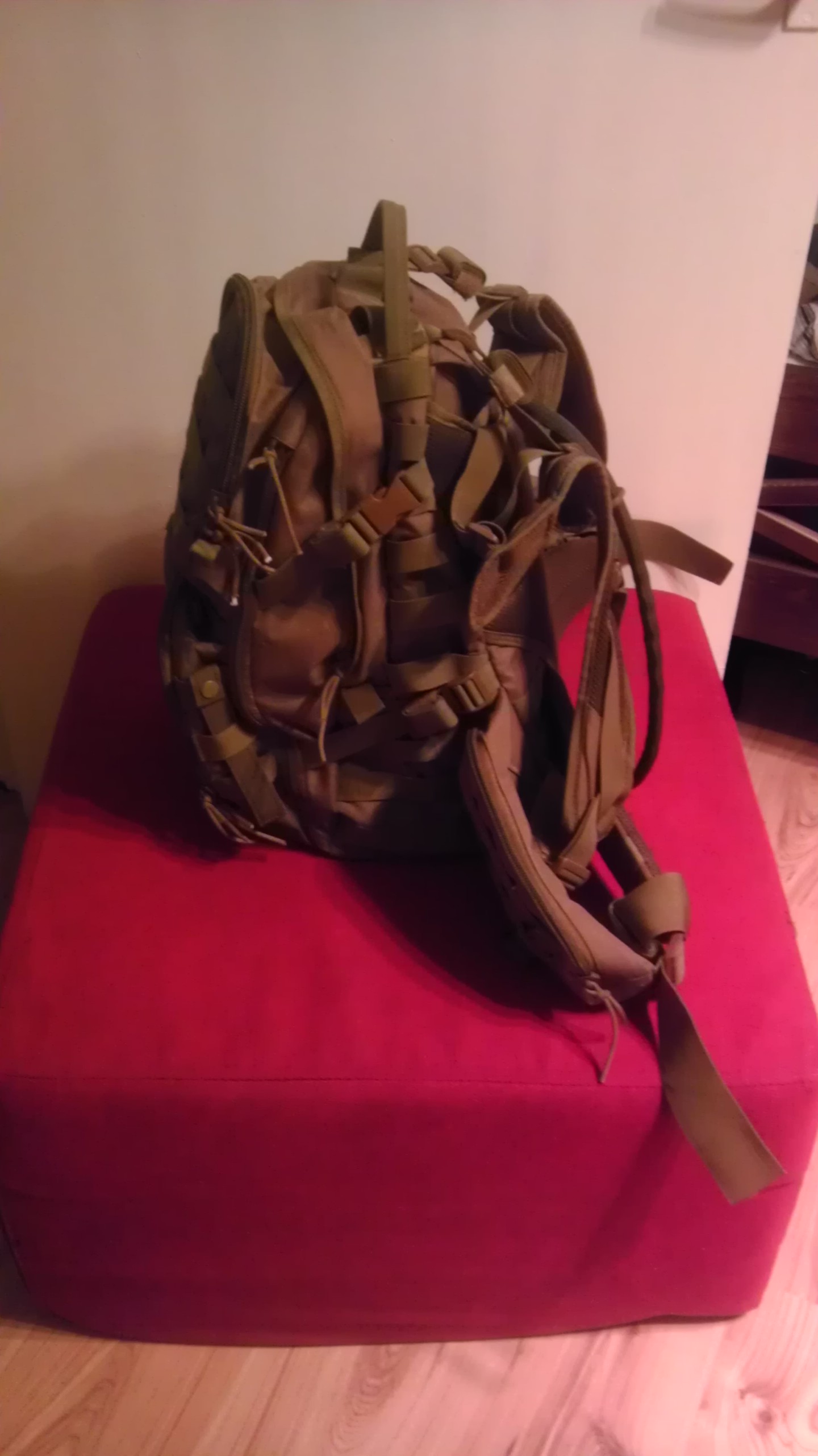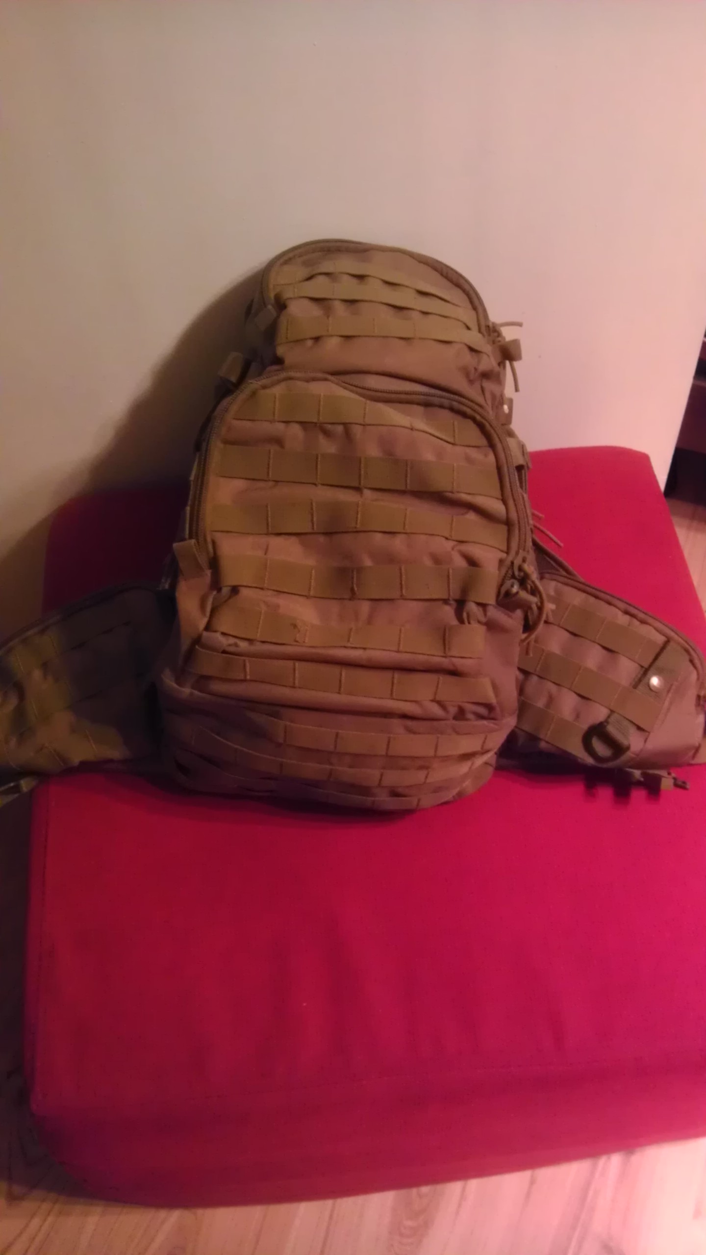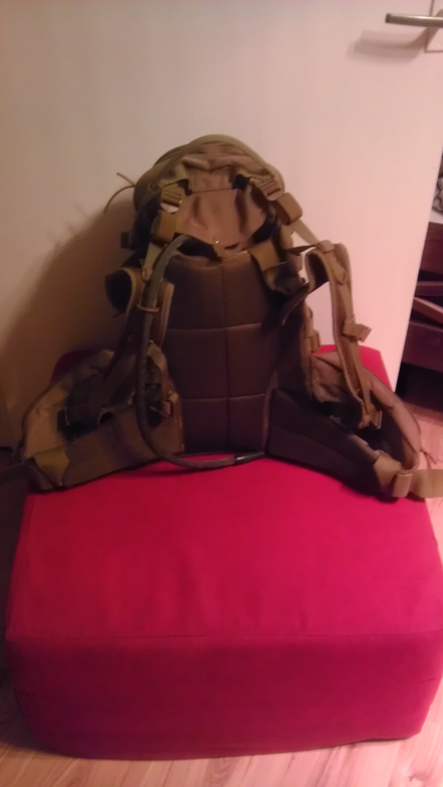 Kott heas korras, midagi katki ei ole, üksikud kulumismärgid. Kokku 8 taskut. Suur tasku( mille sees 2 pudelivõrku), labidatasku, kaartitasku, tasku veekotile, kaks varustuse taskut(ühes veekundel tasku), lisaks kaks taskut alumise rihma/vöö küljes. (hind 60€)