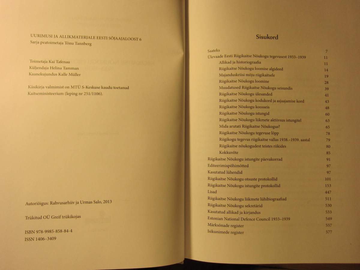 U.Salo: Riigikaitse Nõukogu roll Eesti riigikaitse uuendamisel 1933–1939 // Tuna 2007/3