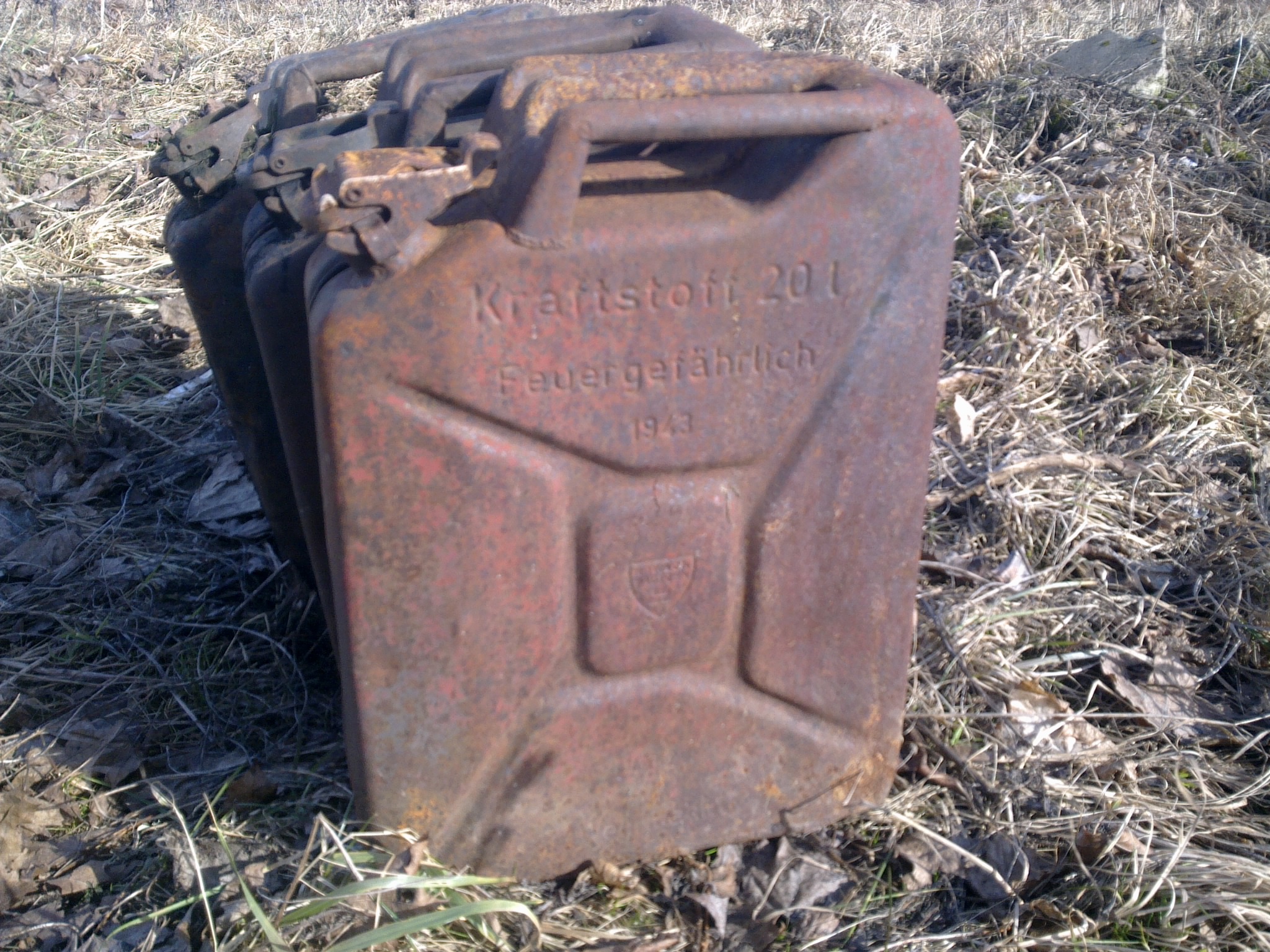 Kolm kanistrit aastatest 1940, 1942, 1943. Kõik Wehrmacht kirjaga aga märkide järgi erinevad tehased. Seisukord: päevinäinud aga vedelikku peavad.
