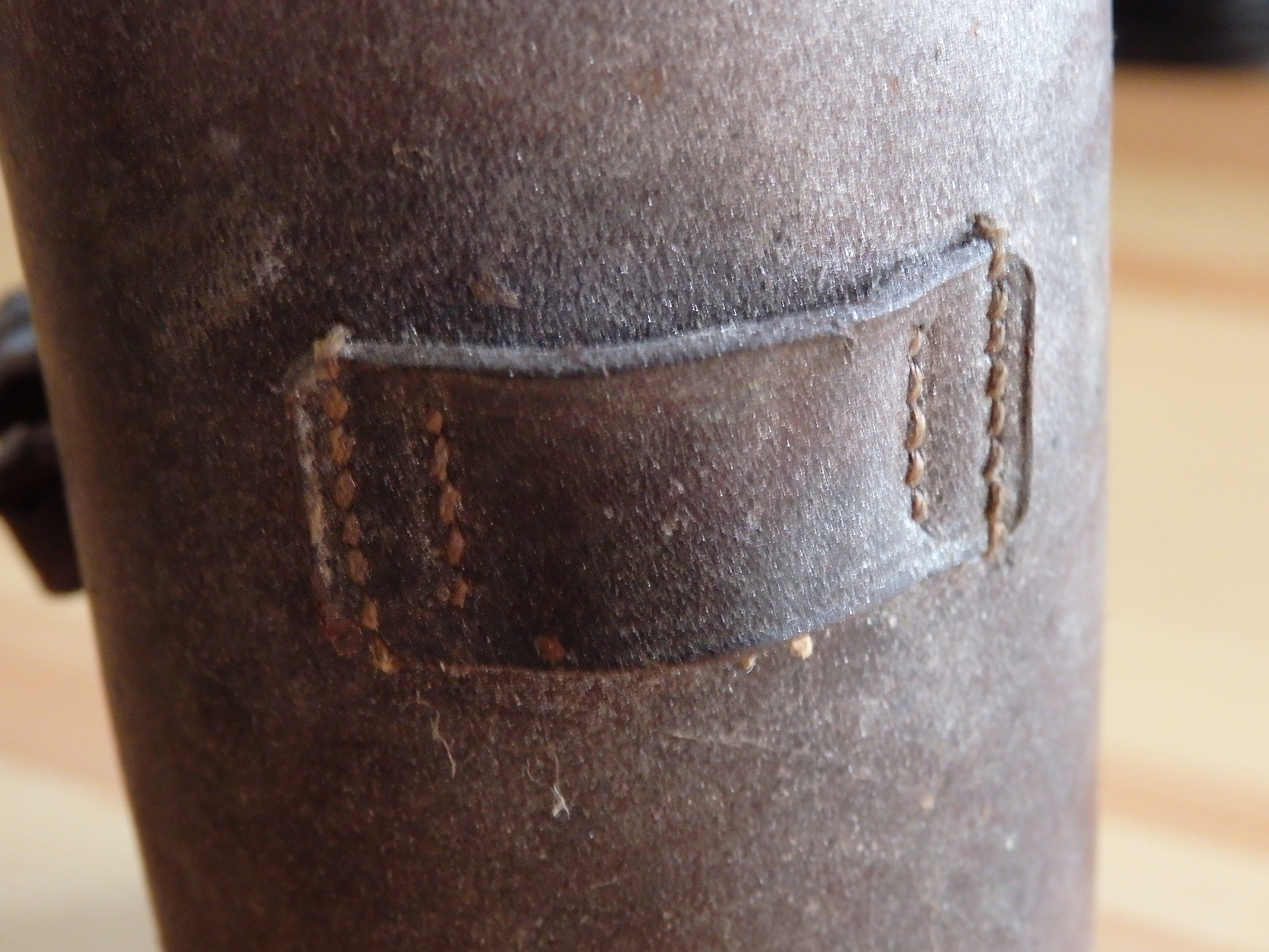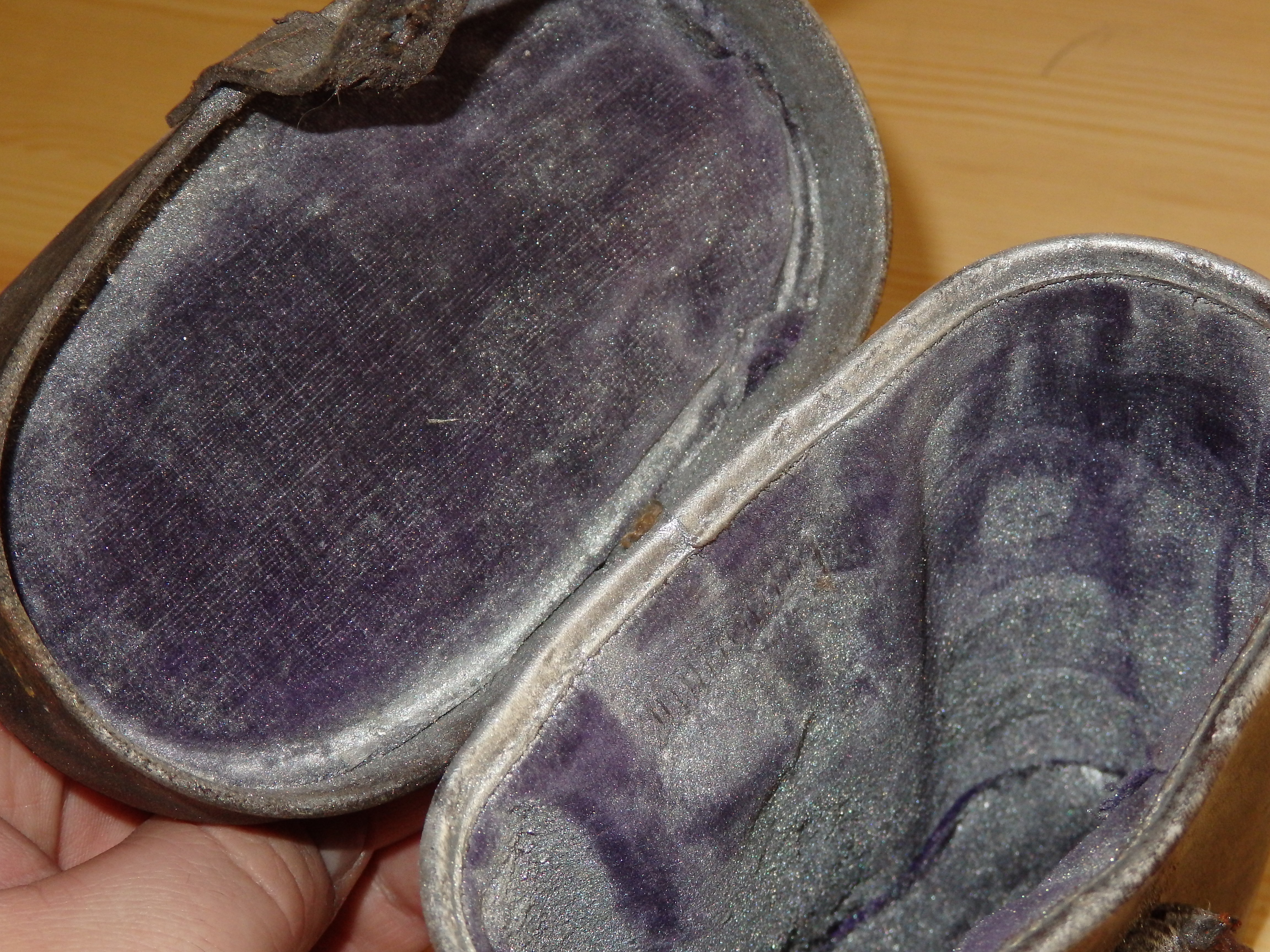 Oleks justkui käinud ikka vöö peal.Õmblused on korralikud,samas saksa markeering puudub.Sees on lilla samet.Kõrgus 14 cm.