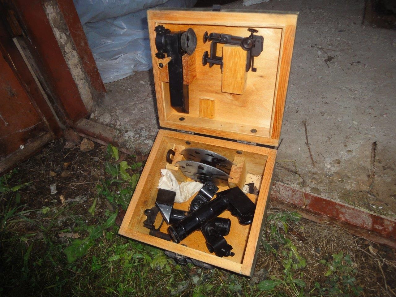 mingi optiline priboor võib ta tõesti olla. Nende metallist torude sees on mingid prismad. Ilmselt on tegemist mingi sihtimissseadega või ka abiseadmega kui vaadata neid eri suurustes kujusid ja märgitud vahemaid. Komplektne on ta aga kindlasti, jõudis minu kätte 90ndate algul uuena ja on lihtsalt garaaziz tolmu kogunud. Hinda ei oska nimetada, kel huvi on võib pakkuda privasse.