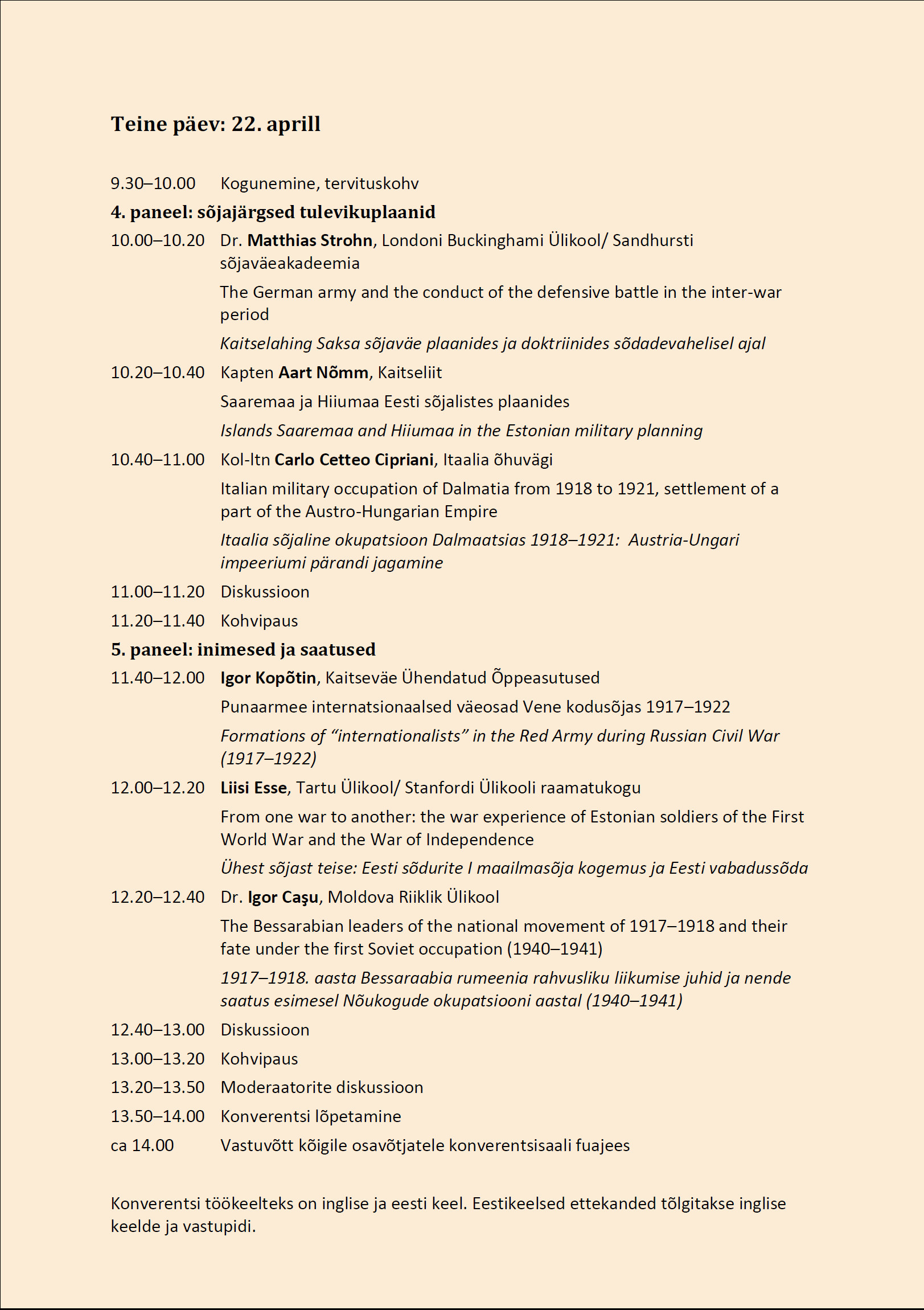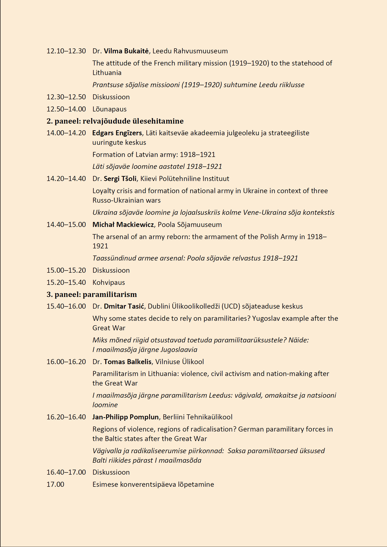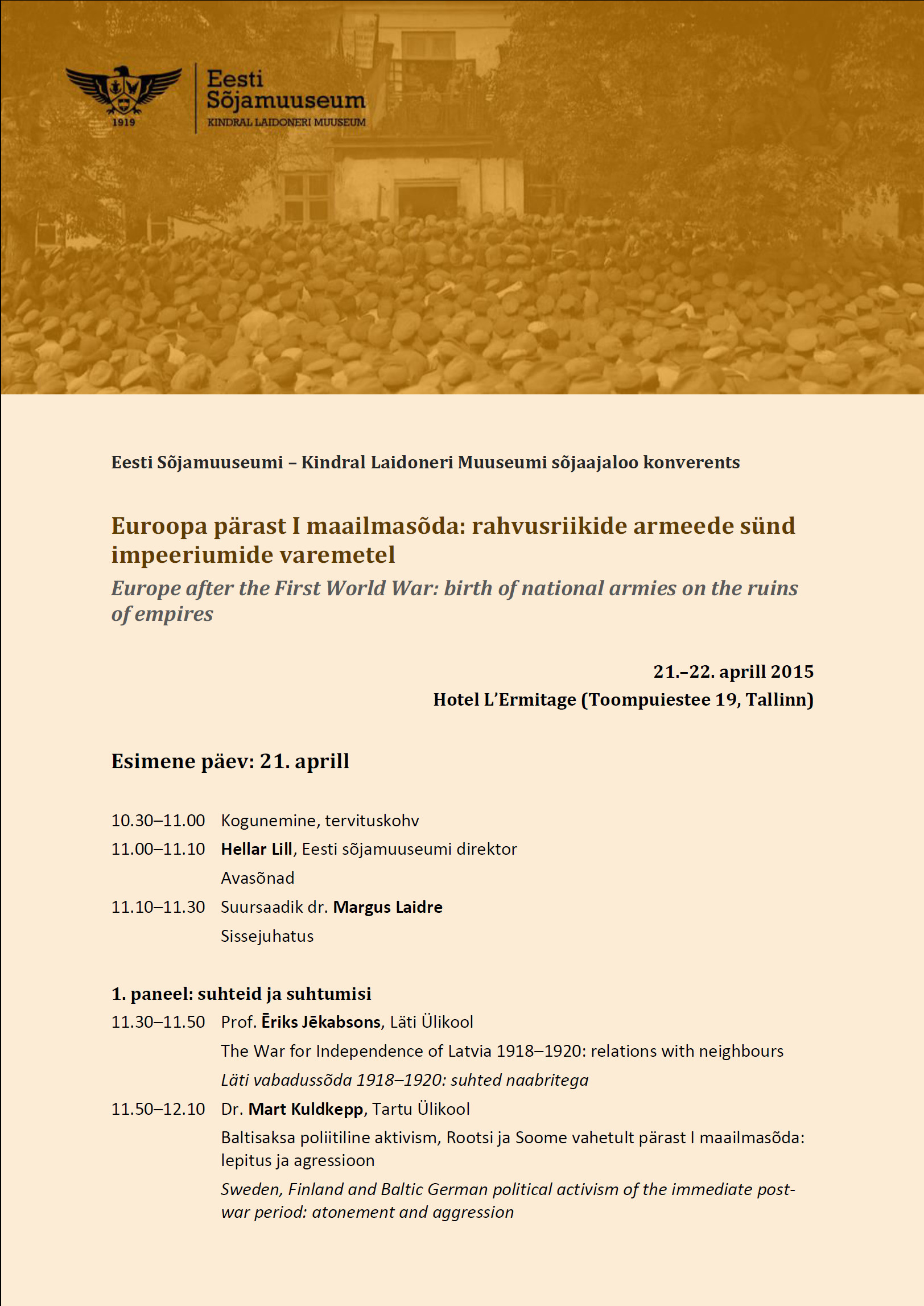Eesti Sõjamuuseumi 6. rahvusvaheline teaduskonverents „Euroopa pärast I maailmasõda: rahvusriikide armeede sünd impeeriumide varemetel”