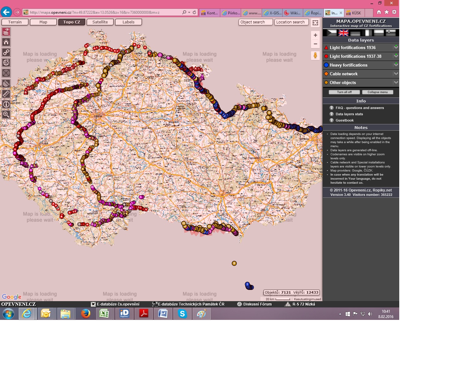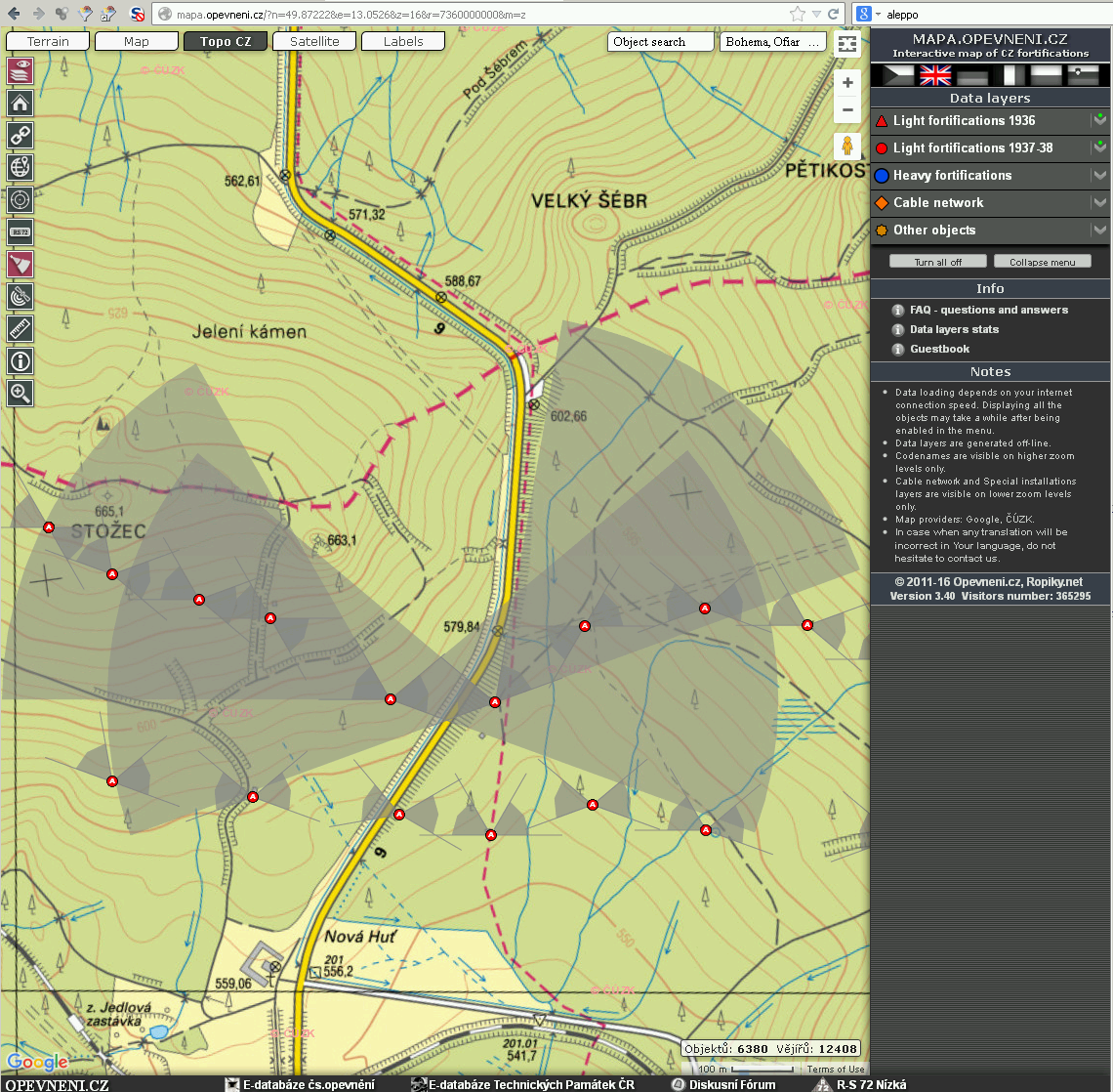 Kuna märked on aktiivsed, viisid need ühele Tšehhi netilehele, http://mapa.opevneni.cz/?n=49.87222&e=1 ... 000000&m=z kus hakkas lahti rulluma minu jaoks hämmastav lugu. Aastatel 1935 - 1938 rajati riigi kaitseks kaitserajatiste ulatuslik võrgustik, mis Saksa suunal oli kohati kolmekordne. Kui Saksa suunal oli tegu peamiselt dzottide ja reduutidega siis Poola (ehk ka Vene siis) suunal rajati raskemad kindlustused koos kahurväe tulepunktidega. Kuna interaktiivsel kaardil on näha ka laskesektorid ja ulatus, hämmastas see, et tulesektorid kattuvad ja on mitmekordselt dubleeritud. Kahurväe positsioonidel on näidatud ka maa-aluste käikude ja ladude paiknemine. Tšehhi netileht on ülima asjalikkusega kajastanud kogu projekti, lisaks joonistele-koordinaatidele ja muule mudrule on toodud ära ka insenerid ja iga punkti ehitaja. http://www.opevneni.cz/ Ühesõnaga väga informatiivne lehekülg.