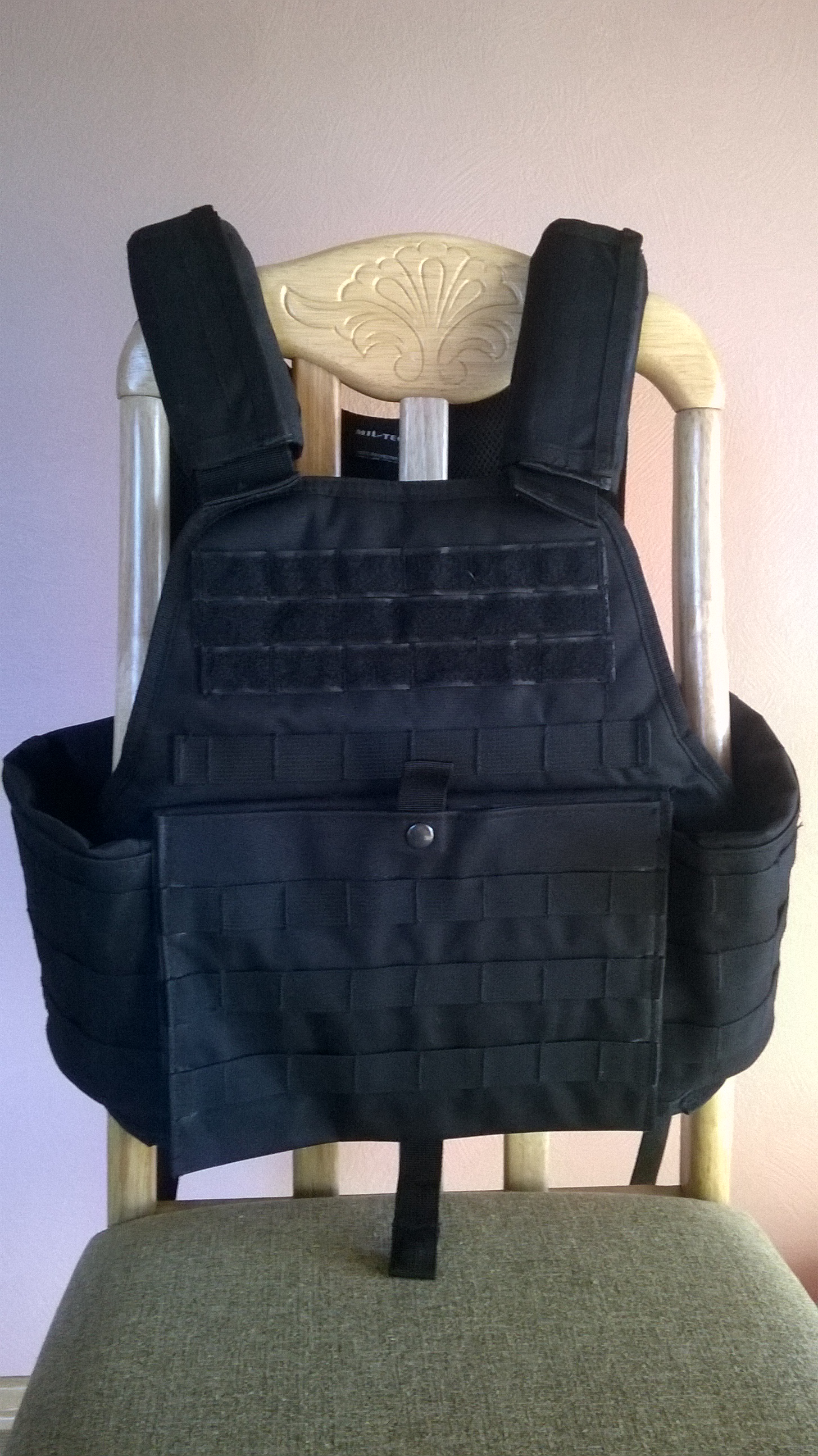 Müüa Mil-Tec taktikaline turvavest , must. Vestile on võimalik paigaldada ette ja taha turvaplaadid (taskud Velcro kinnitustega). Turvatud ka tagaosas. MOLLE paelad ees ja taga. Velcro paelad ees ja taga ID-tunnussiltide kinnitamiseks. Hind 30,- Eurot.