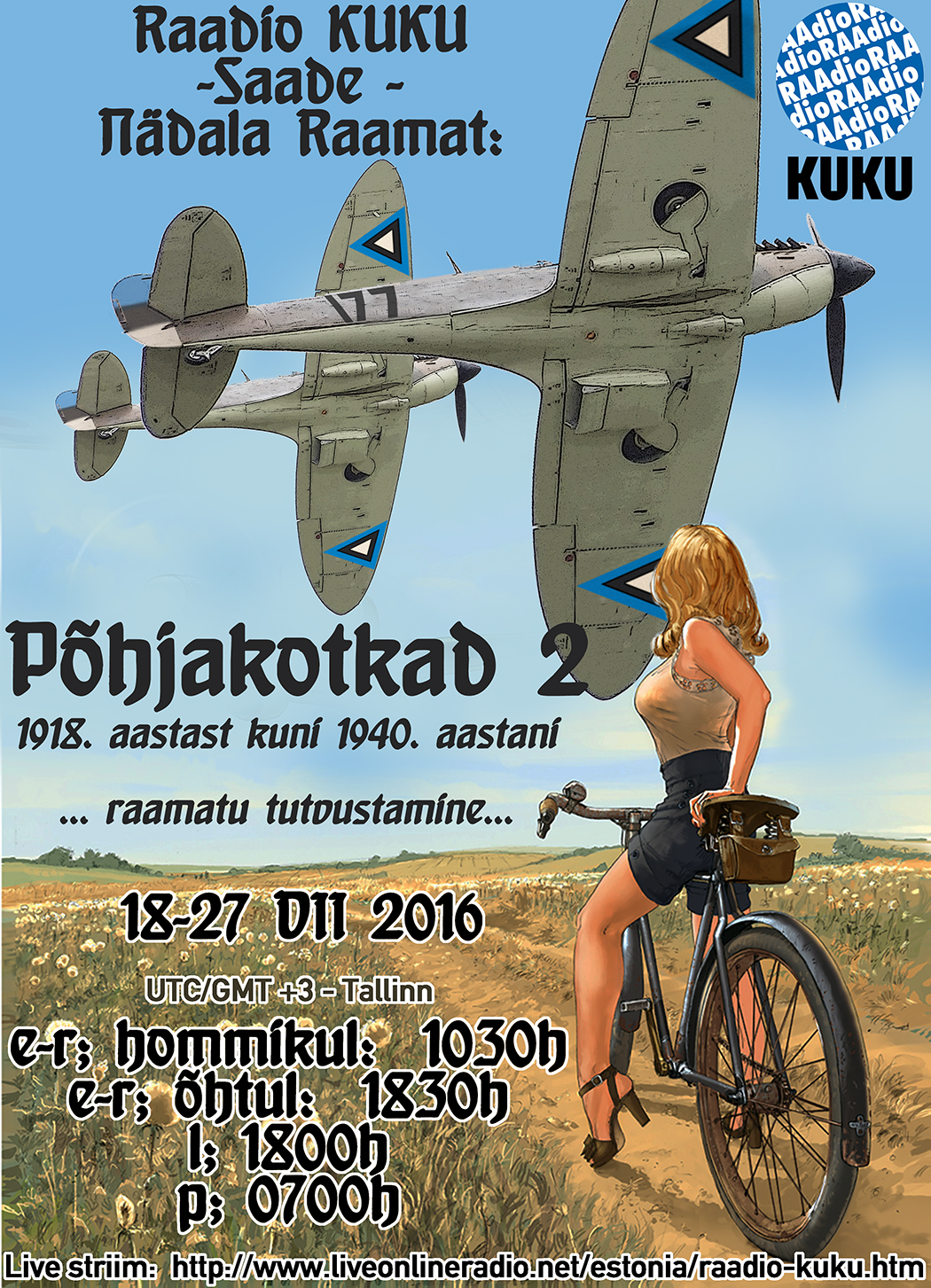 For their weekly "Book Of The Week" program, Radio KUKU, in Estonia, will showcase our Estonian aviation history book - Põhjakotkad 2, to their radio audience. The program broadcasts will be aired: