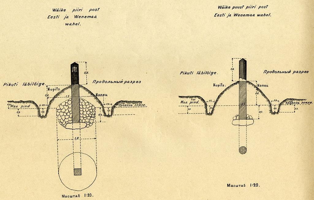 „Kui kindel piir koha peal ajutiste piiri märkidega oli sisestatud, astus sega-piirikomisjon rutulisi samme kindla lõpliku piiri ehituseks. Oktoobris 1920 aastal oli piiri täieliselt sisseehitatud, kusjuures on metsa kohtades raiutud 10 süllalised sihid ja lagedail kohtil kaevatud kahekordsed kraavid: on pandud 74 suurt raud piiriposti, 54 väikest tsement ja 68 väikest puust piiriposti. Kahekordset traat aeda on ehitatud 108 versta. Iga piiri käänu punktile on ehitatud triangulatsiooni signaal 8-18 sülla kõrgused.