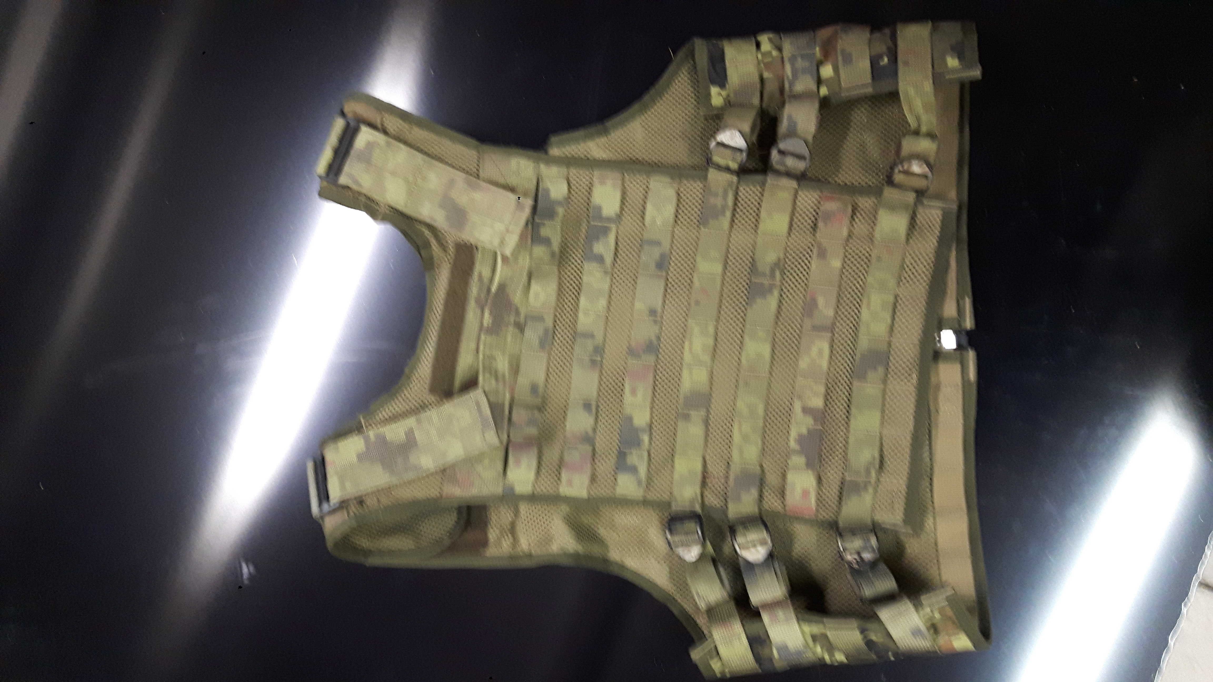 Eest on suletav YKK lukuga ja kolme ITW kiirkinnitusega. Takjakinnitus ( velkro ) vesti ülaosas. MOLLE kinnitusele vastav rihmitus. Õlgadel, lisaks MOLLE kinnitustele ka venivad kummirihmad. Vesti siseosa ja seljaosa valmistatud tugevast võrgust. Vesti esiosas seespool suletavad lisataskud. Seljaosal suletav lisatasku veereservuaari jaoks. Selja ülaosal lai aas lohistamise eesmärgil. Õlgadel reguleerimise eesmärgil kinnitused velkroga. Külgedel mõlemal pool suuruse reguleerimise võimalus. Plastosad ITW firmalt. Vesti alaosas, seespool, MOLLE kinnitus lahingrihma jaoks. Lahingrihm kinnitatav MOLLE rilhmadega ( lisatud lahingrihma komplekti ). Vest on väga kerge kaalult. Kogu lahingvest on infrapuna kindel ( testitud AN/PVS 14 3gen. ) testitud 5 ja 10m kauguselt.