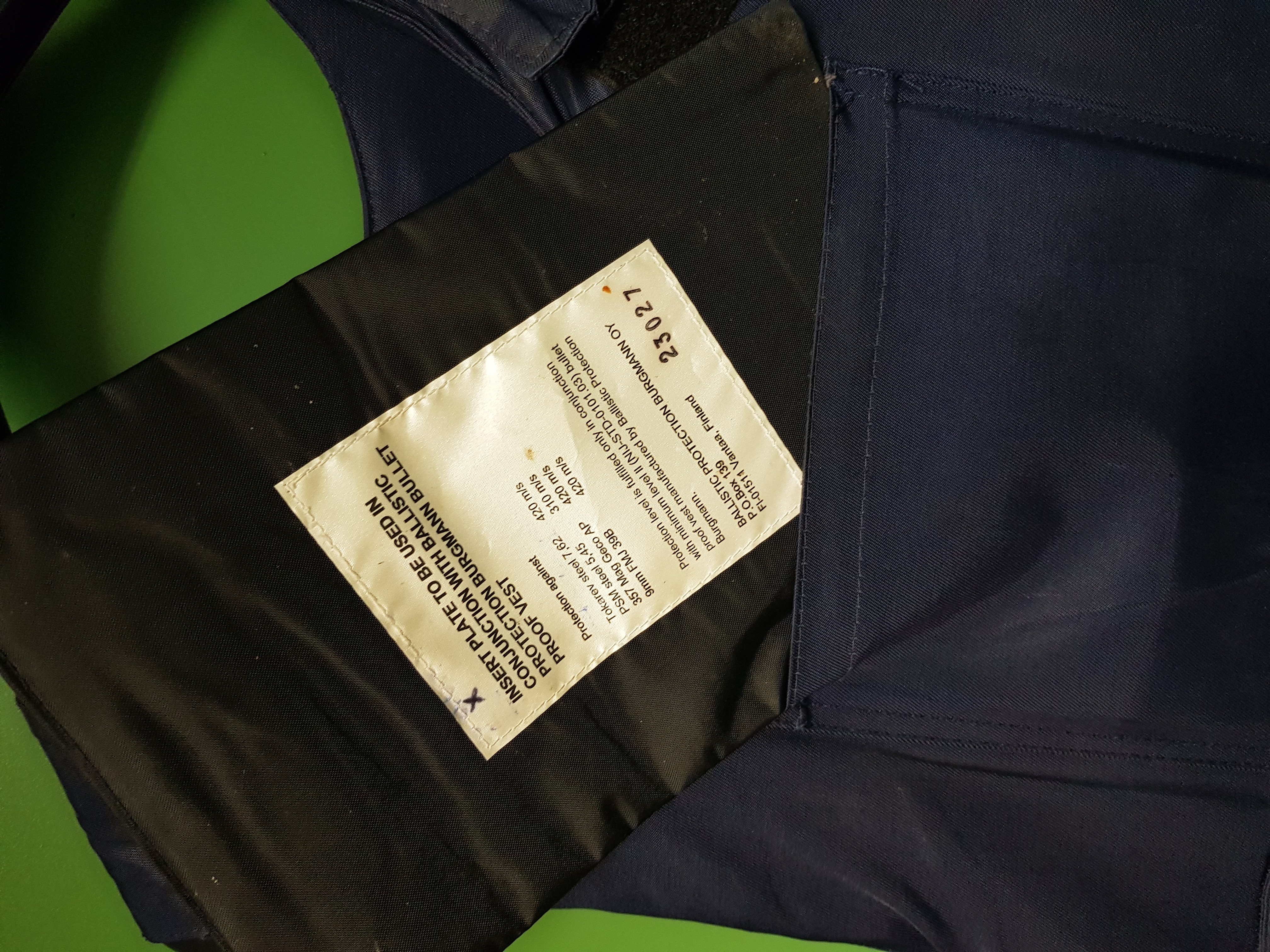 Müüa XL suuruses kuulivest. Ees rinnataskus metallist plaat. Asukoht: Tallinn