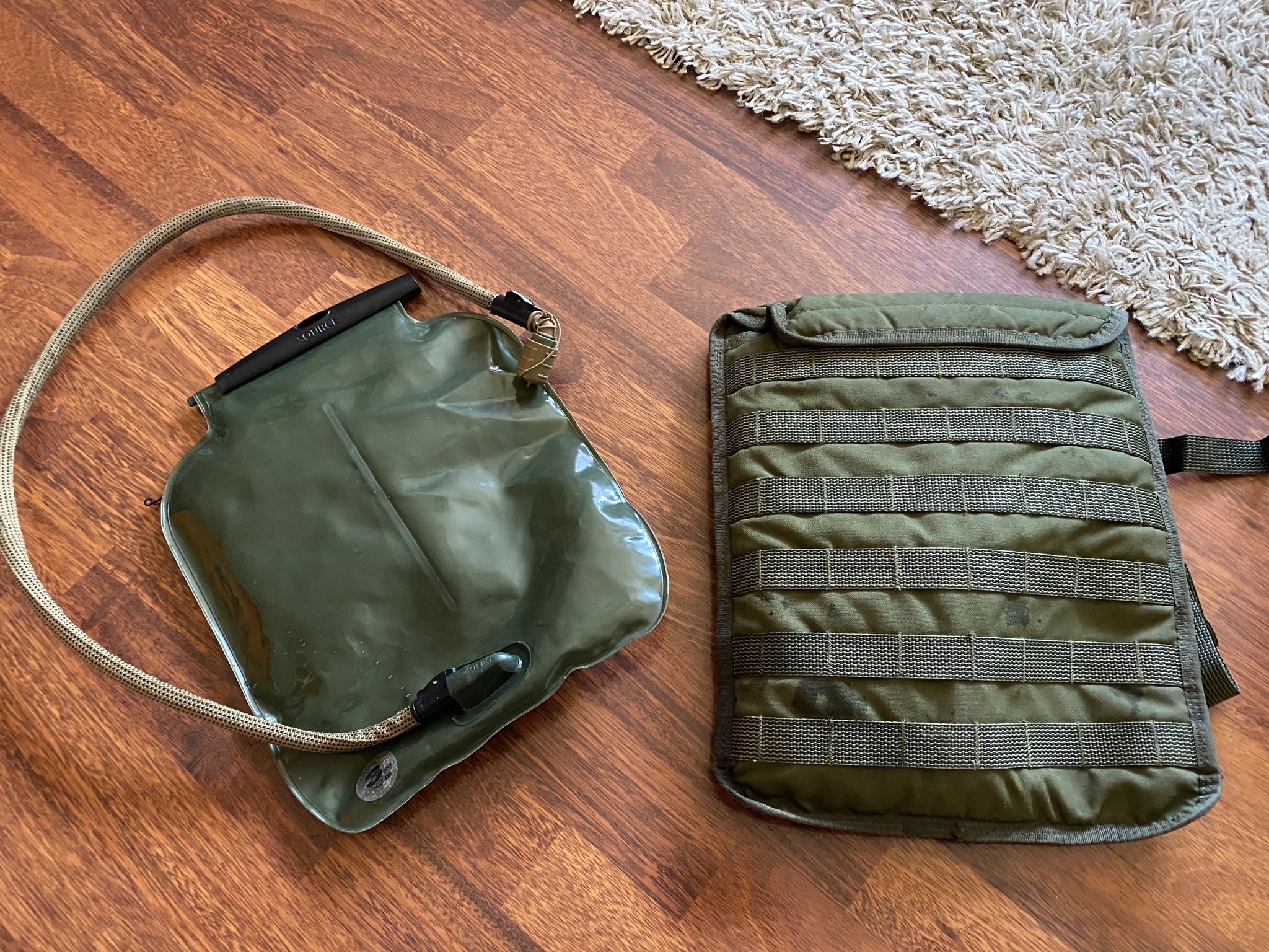 Müün kasutatud lahingvesti, 3L camelbagi ja digilaigus meditsiini tasku molle kinnitusega. Kõik ostetud Galvilindast. Lahingvesti miinuseks on see, et vestil on lukk katki. Camelbag ja paun täiesti korras.