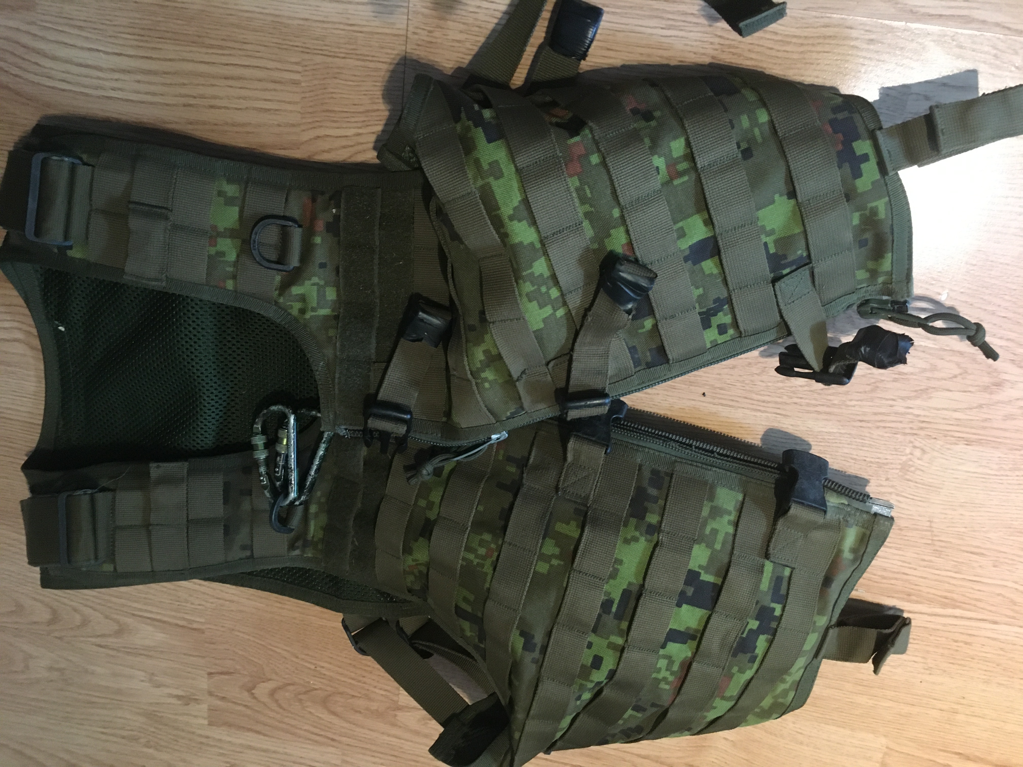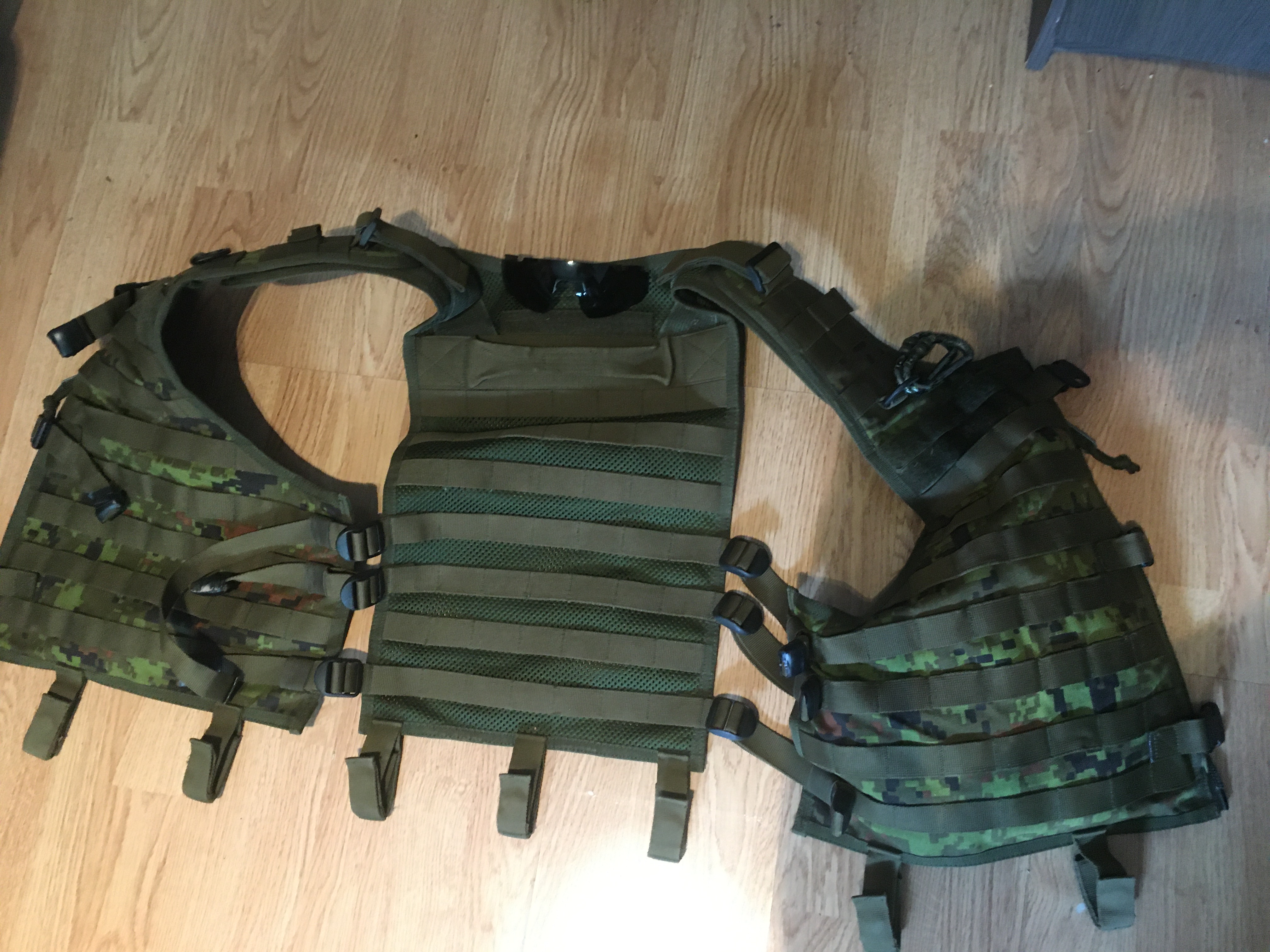 Vestil on kaks sisetaskut+camelbacki paun ja sang. rihmad on hetkel kinni teibitud, et need ei lipendaks. Vestiga on võimalik soetada ka kasutamata mustad prilliklaasid, mille ostuhind oli 20 eurot. raamid saab kv-st või militaarpoest ise odavalt juurde osta.