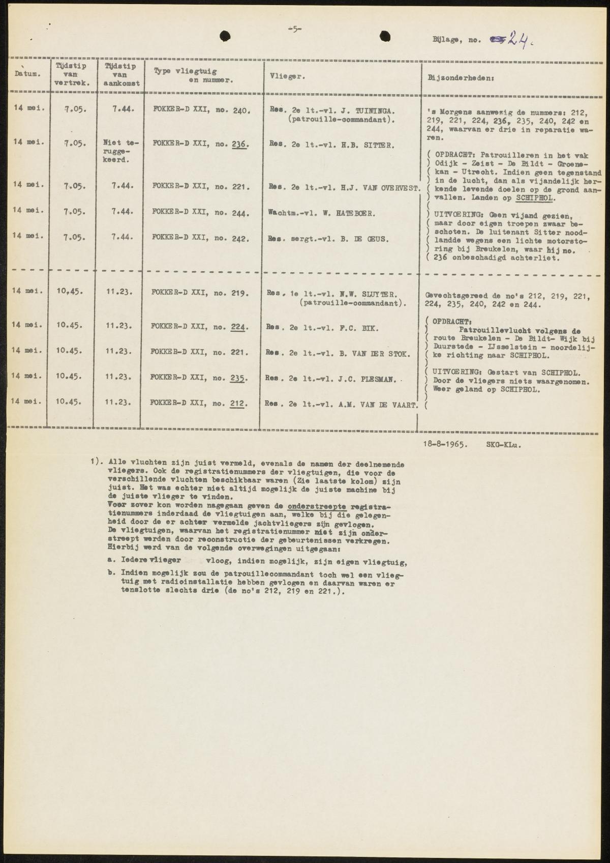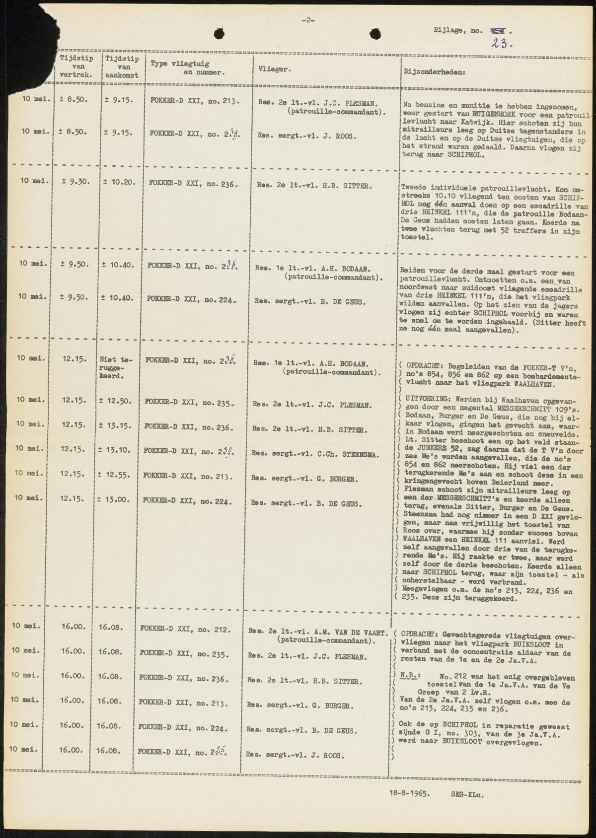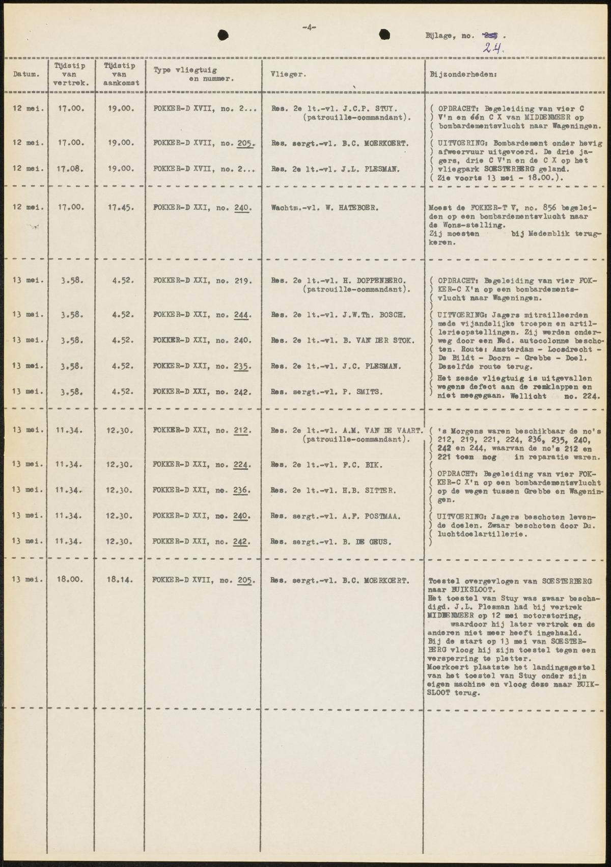 A much surprising conclusion was that the planes that had been considered quite obsolete and much outdated, like the Fokker C-V and C-X bi-planes, had performed far beyond expectation. Before the war commanders had had their doubt over the value of these older planes. Miraculously few of these planes had been shot down and especially their ground support capacity had been applied many times and with [generally spoken] a high success ratio. In fact, the bulk of the ground support missions flown had been born by these two older types.