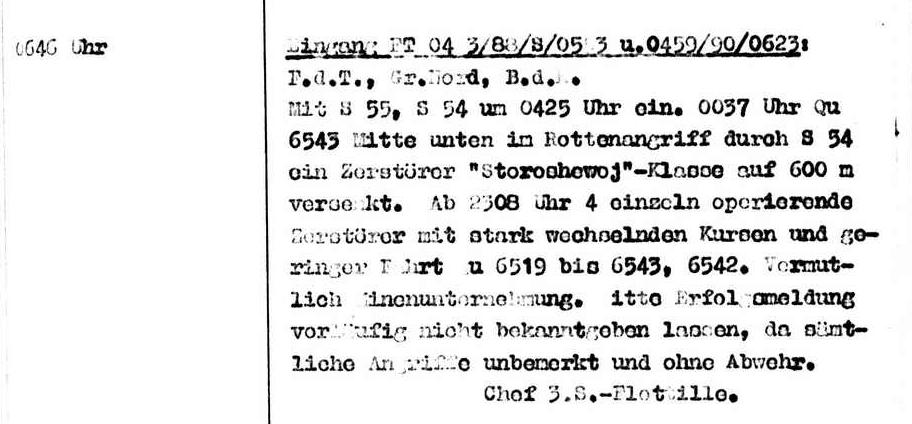 Sündmusega võiks sobida hävitaja Smelõi (projekt 7-U) uppumine 27. juulil 1941.a. selles piirkonnas. Nõukogude poole andmed sõja lõpus olid sellised: