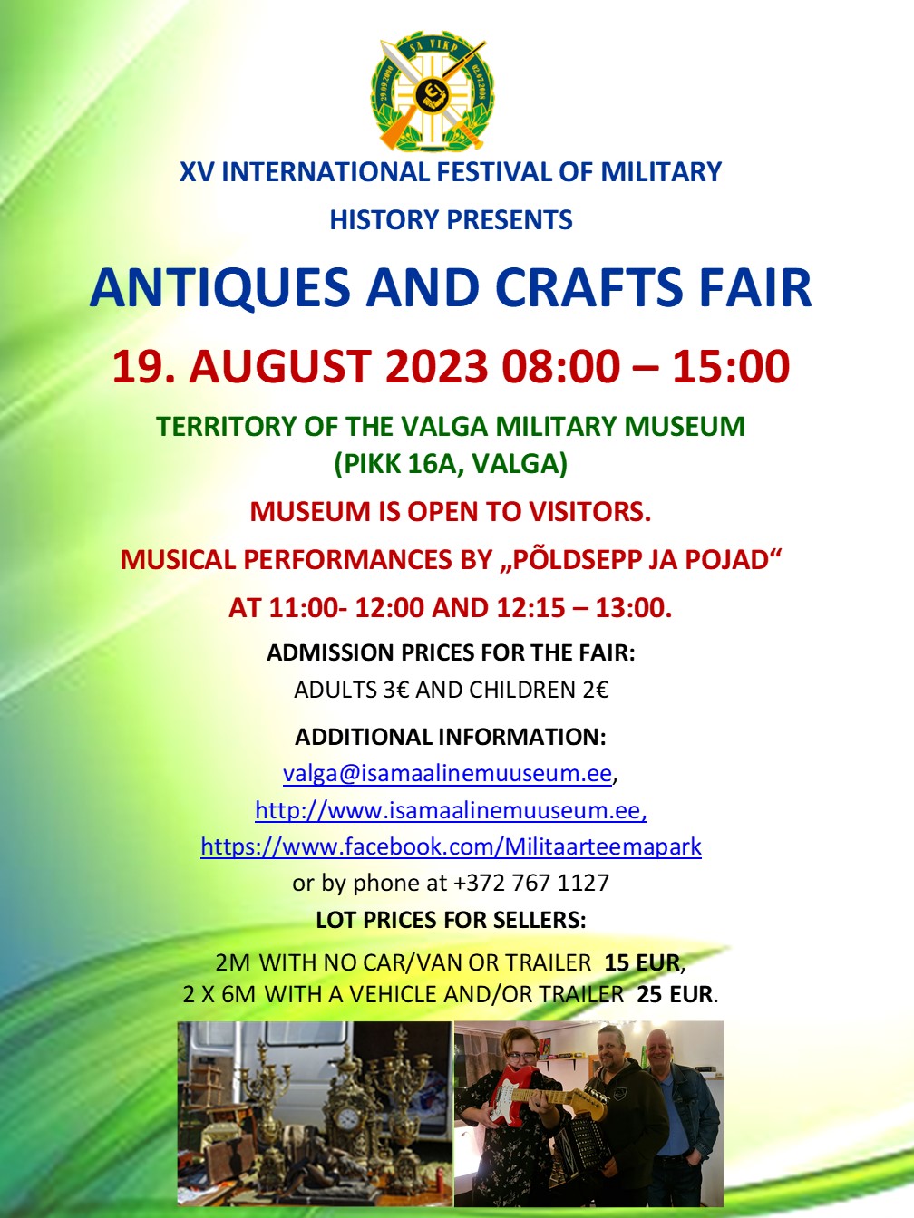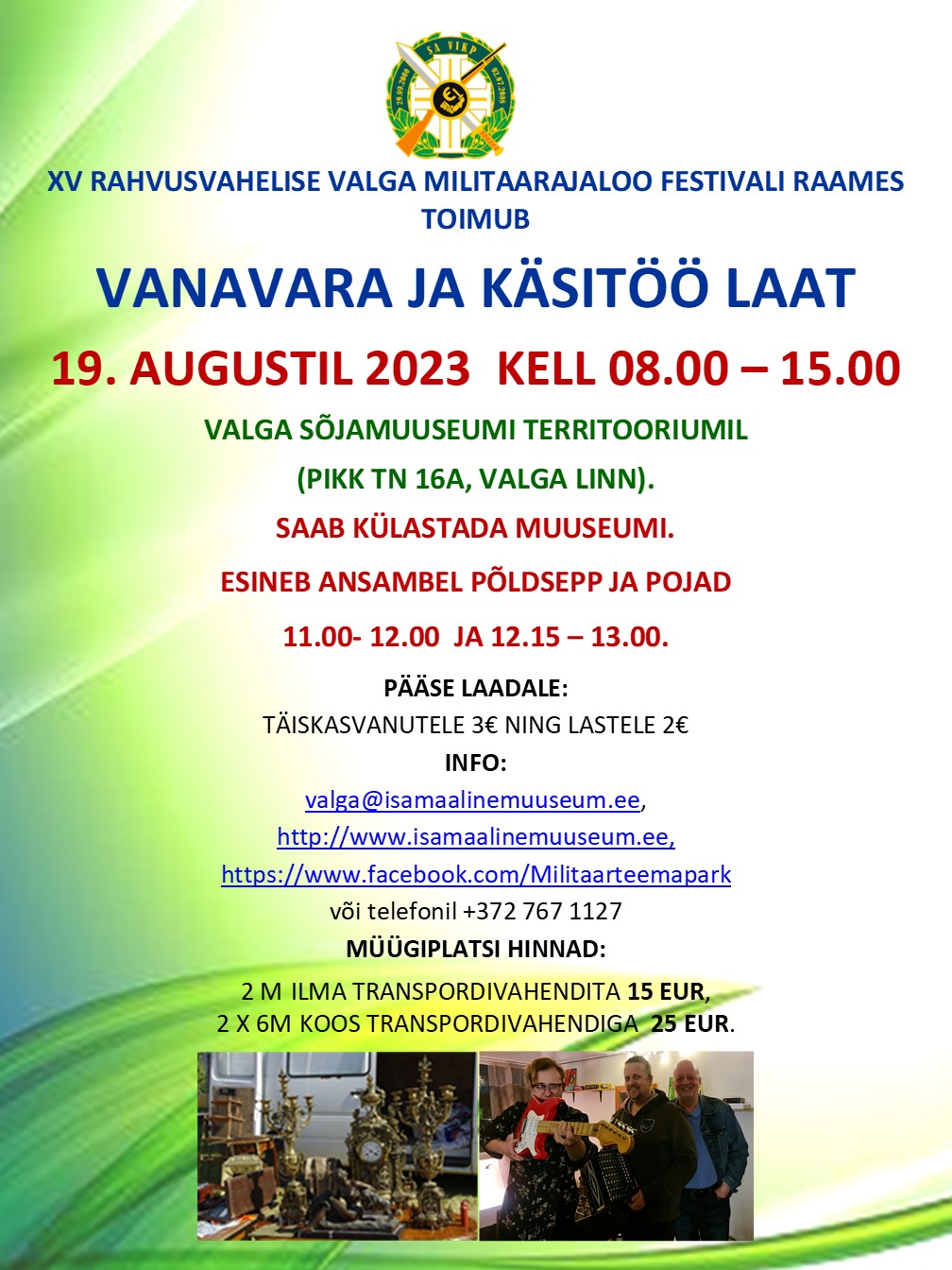 Festivali teisel päeval (19.08.2023) on käsitöö- ja vanavaralaat ning Valga sõjamuuseumi koostööpartnerite poolt pakutavad tegevused linnapargis.