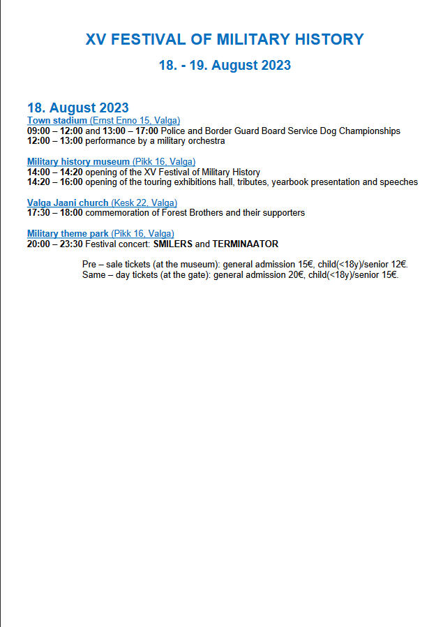 [attachment=0]XV VALGA MILITAARAJALOO FESTIVALI KAVA11_est.pdf.png[/attachment][attachment=1]XV VALGA MILITAARAJALOO FESTIVALI KAVA22_est.pdf.png[/attachment]