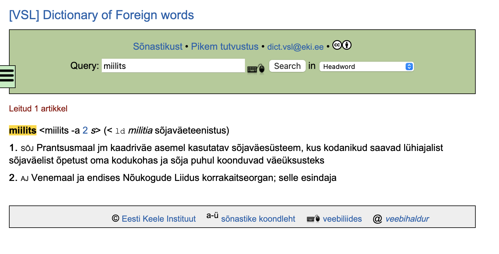 Just-just. Ja kirjutab nüüd Võõrsõnade leksikoni tädidele ja nõuab kategooriliselt, et militia (maakeeles miilits) tohib tähendada ainult nõukogude altkäemaksuvõtjat.